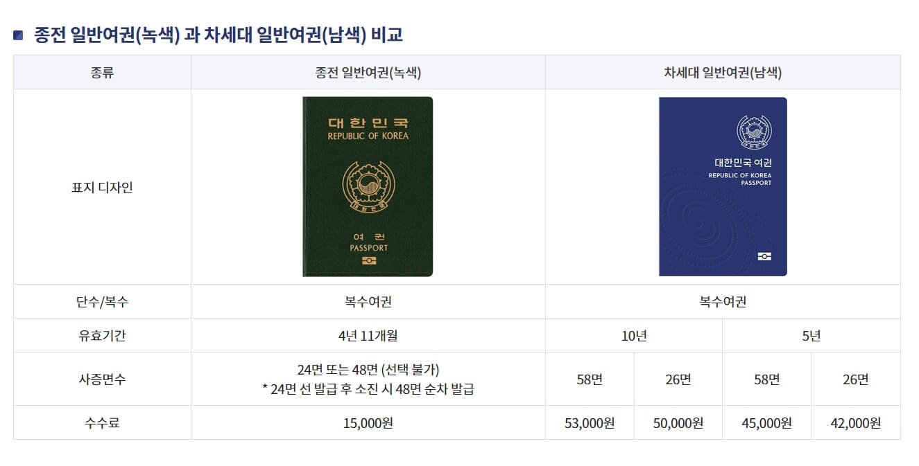 즉, 가격상, 디자인적인 차이 말고는 두 여권의 차이는 없습니다!